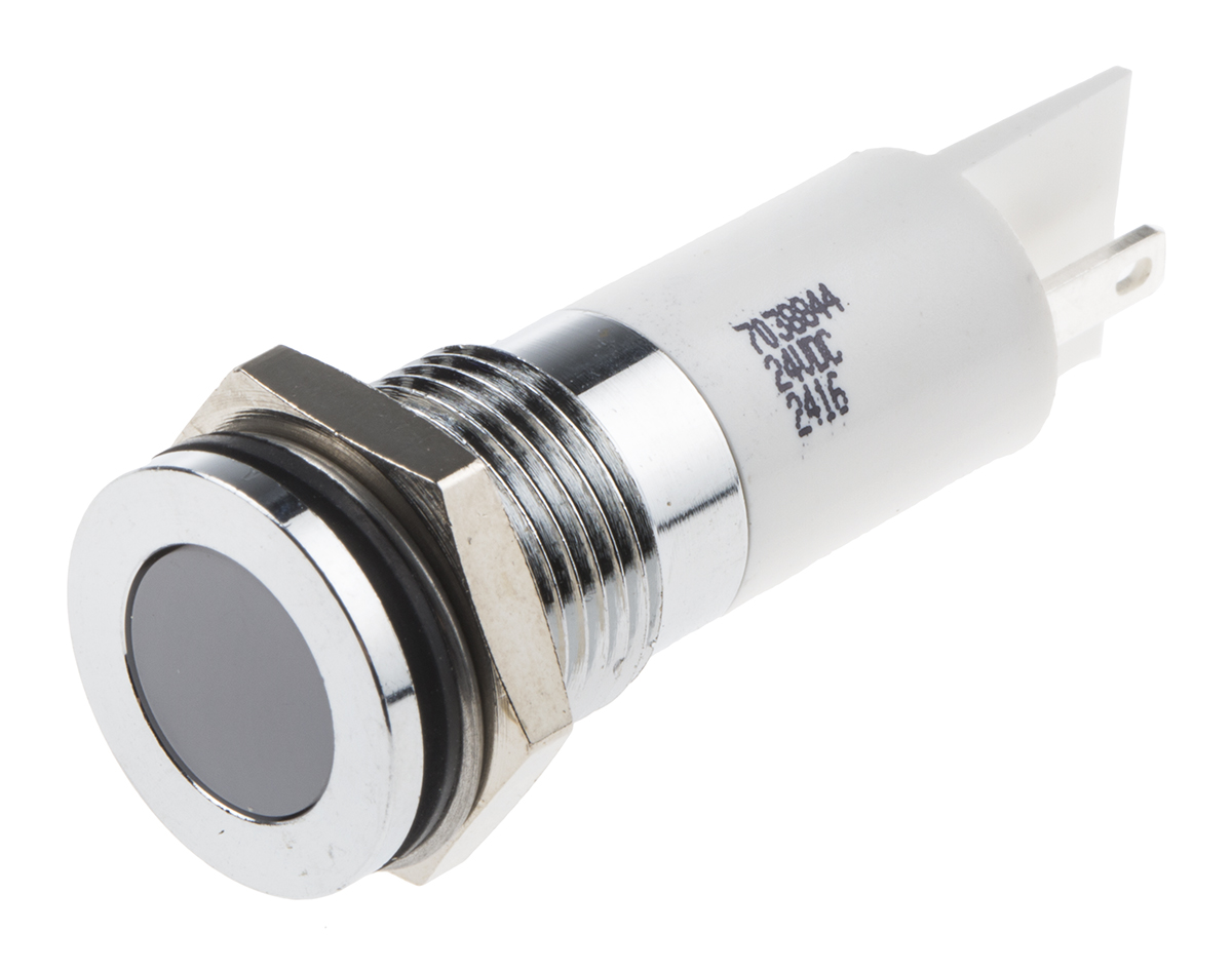 14. Lampka kontrolna do montażu panelowego 24V dc, biała 14mm LED Chrom Końcówka lutownicza RS PRO 70.69