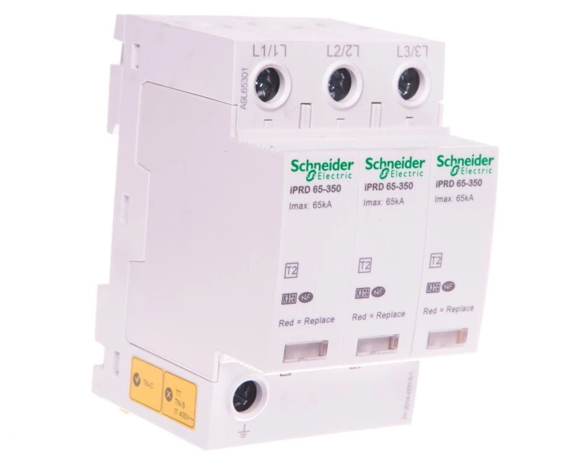 6. Ogranicznik przepięć Typ T2 3P 65kA ze stykiem pomocniczym iPRD-65r-65kA-350V-3P A9L65301 655.91