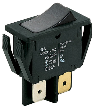 7. Przełącznik kołyskowy Zatrzaskowy Nie 16 A SPST Czarny IP40 Marquardt 18.23