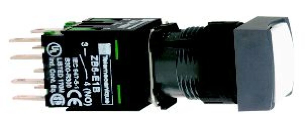 12. Przycisk kompletny biały kwadr., O 16, kryty z sam. powr., 1NO XB6CA11B 91.54
