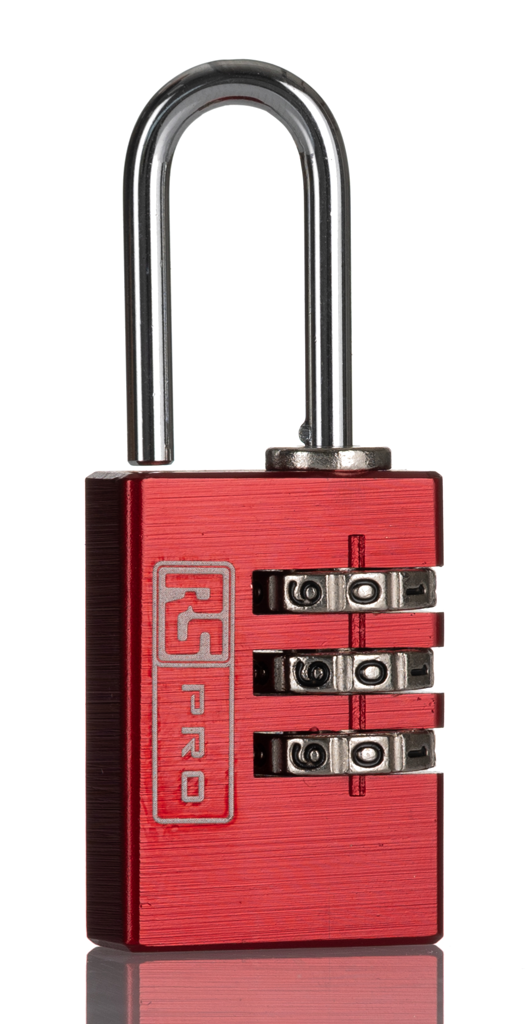 6. Kłódka szyfrowa średnica szekli: 3mm RS PRO Kłódka szyfrowa W budynkach, na zewnątrz aluminiowa Czerwony 31.13