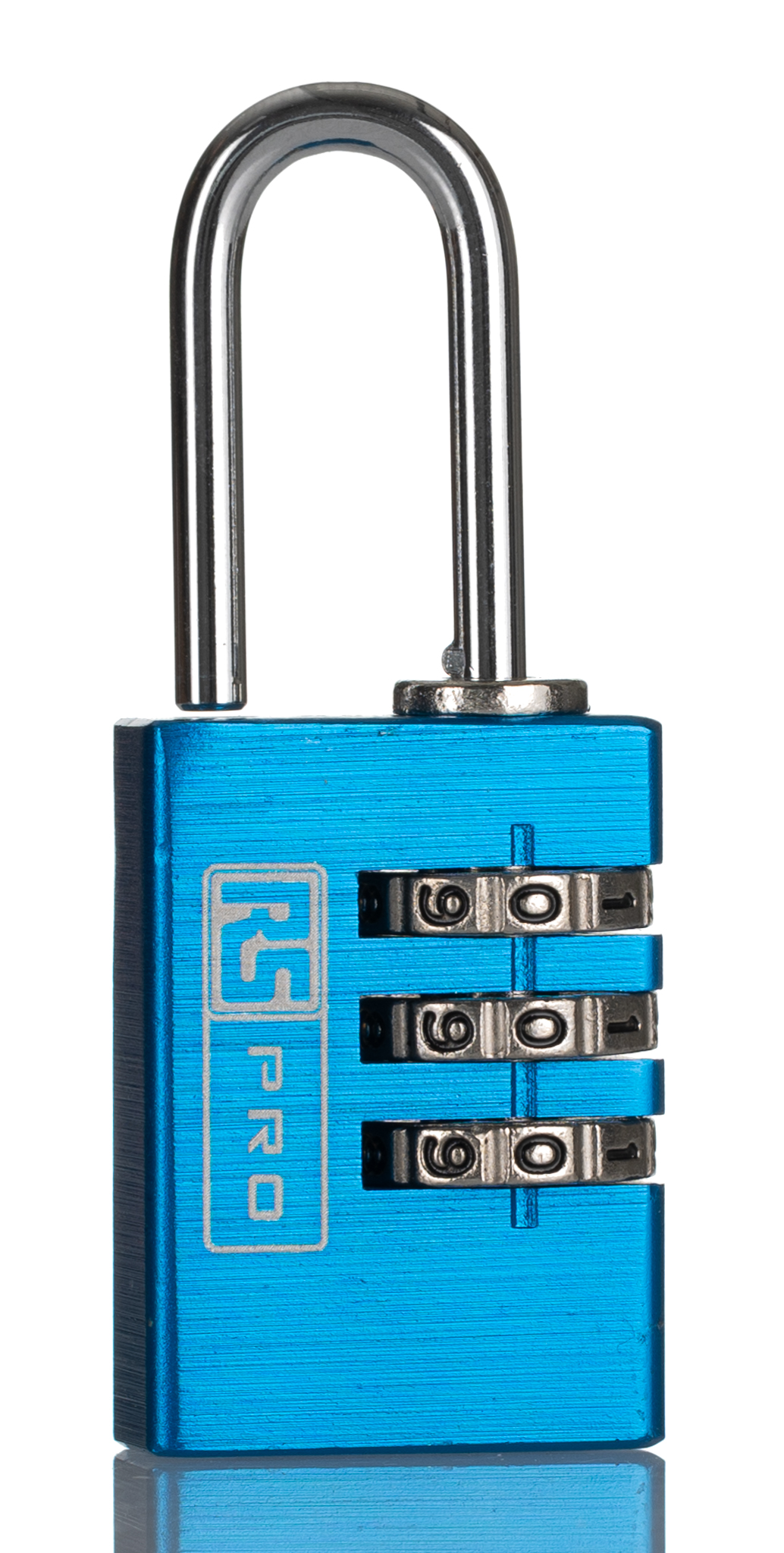 8. Kłódka szyfrowa średnica szekli: 3mm RS PRO Kłódka szyfrowa W budynkach, na zewnątrz aluminiowa Niebieski 31.13