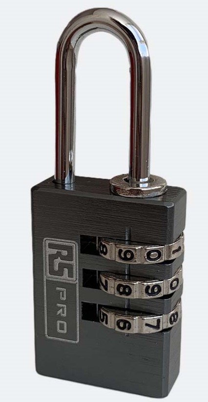 9. Kłódka szyfrowa średnica szekli: 3mm RS PRO Kłódka szyfrowa W budynkach, na zewnątrz aluminiowa Szary 31.13