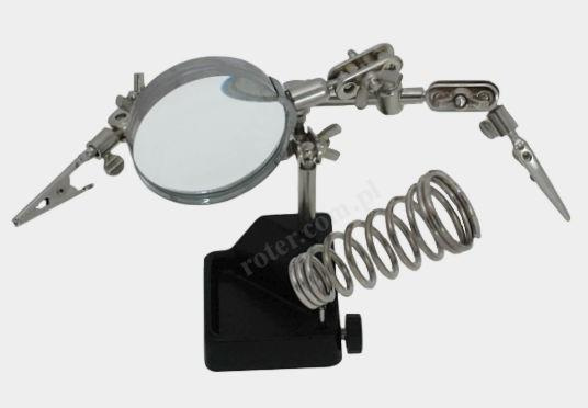 Uchwyt trzecia ręka z lupą, lampka 5x LED, uchwyt na lutownice, podstawka