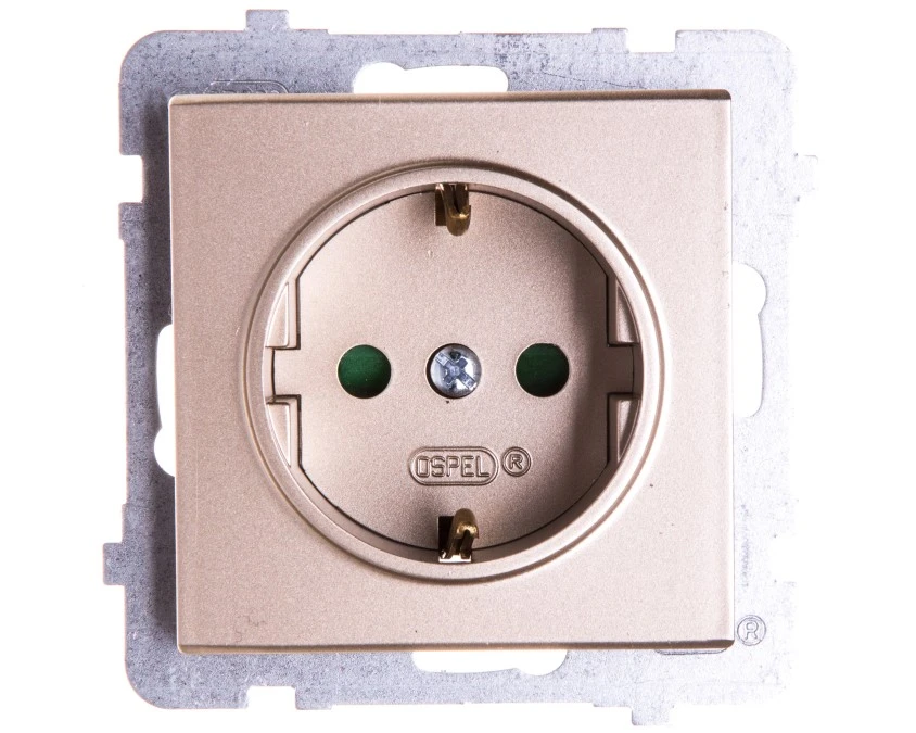 7. SONATA Gniazdo pojedyncze z uziemieniem IP44 szampański złoty GPH-1RZ/m/39/d OSPEL 31.86