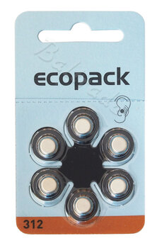 6x baterie do aparatów słuchowych ecopack Varta 312