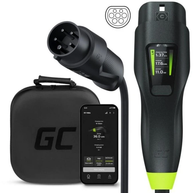 Green Cell GC Habu Ładowarka Mobilna EV 11kW 7m Typ2 CEE16A Wallbox z Aplikacją do Tesla Model Y 3 S X, Kia EV6, Ford Mach-E