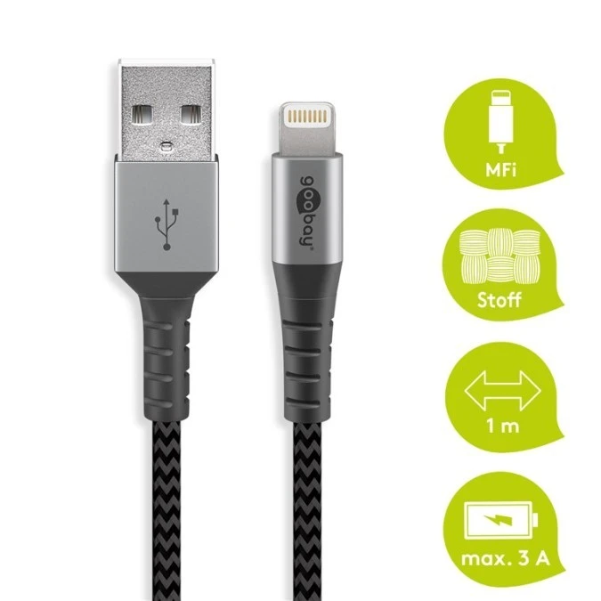Kabel Lightning USB-A tekstylny z metalowymi wtyczkami 1 m 49268