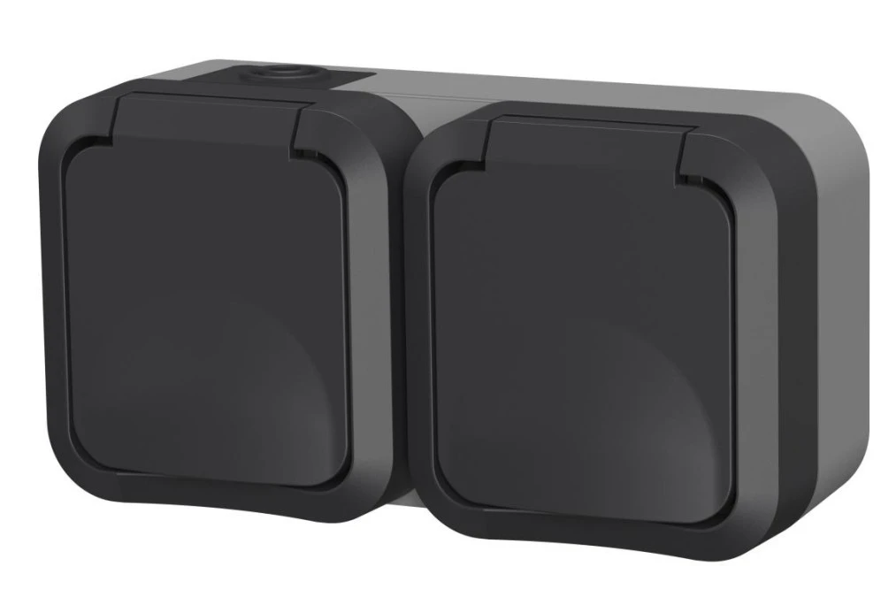 Gniazdo z uziemieniem podwójne natynkowe Aqua Pro IP55 szaro grafitowe 60325