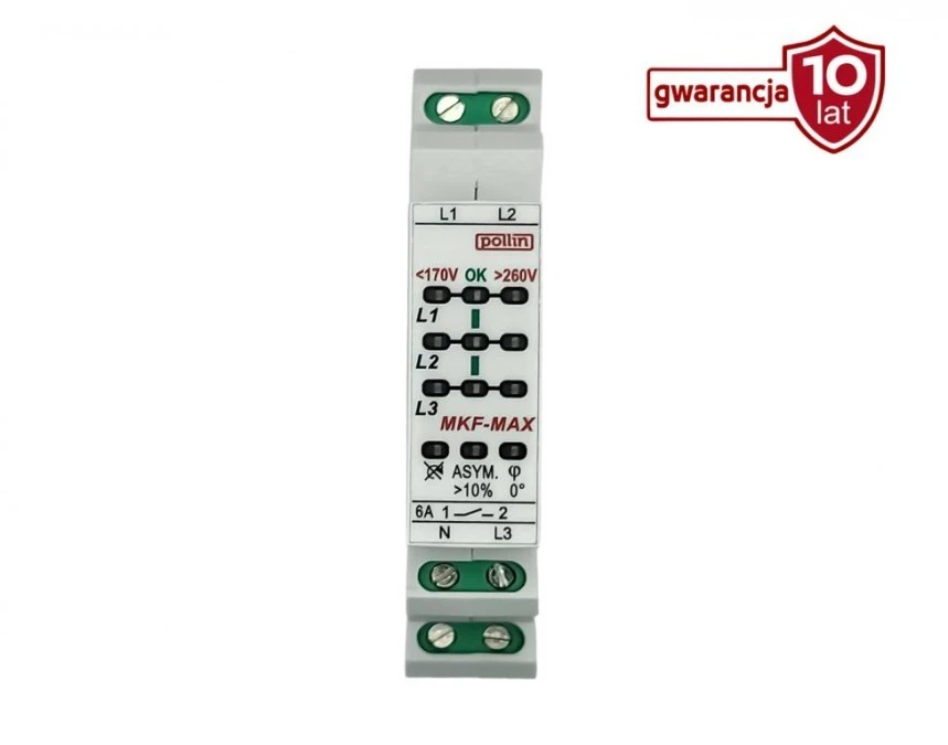 Przekaźnik zaniku, kolejności i asymetrii, zwarcia faz, wachań napięcia 170V, 260V, 1Z MKF-MAX