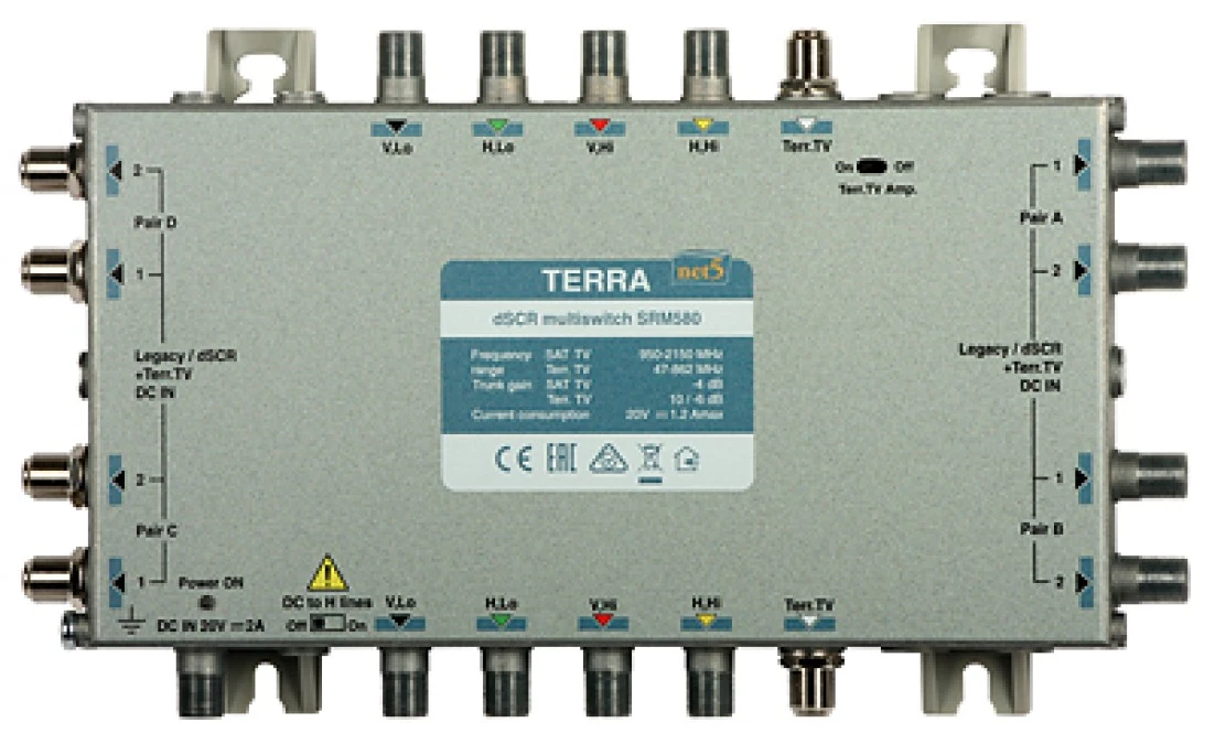 8. Multiswitch przelotowy SRM-580 Terra klasa A z AGC - aktywny tor TV Digital SCR/Unicable 1424.07