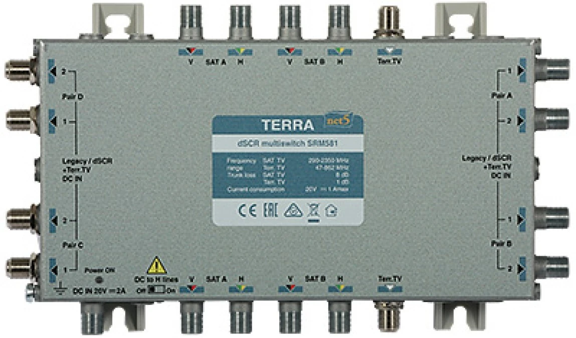 Multiswitch przelotowy SRM-581 (290...2340 MHz) Terra z AGC - klasa A z aktywnym torem TV Digital SCR/Unicable
