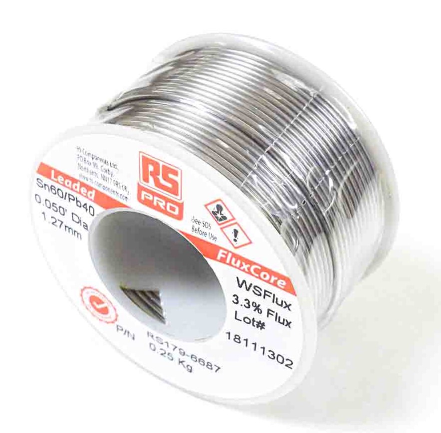 5. Lutowie z ołowiem średnica 1.2mm RS PRO 40% Pb temp. topnienia 183°C 250g 60% Zn 144.46