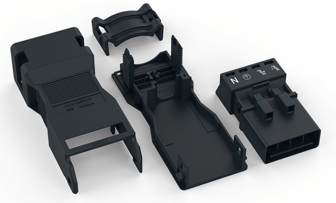 2. Gniazdo 4-torowe czarne z obudową odciążającą naciąg WINSTA MINI 890-104 /50szt./ 1517.21