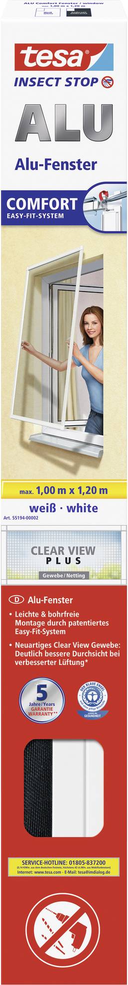 Moskitiera okienna Tesa Comfort z ramą aluminiową, 1,2 m x1 m, biała