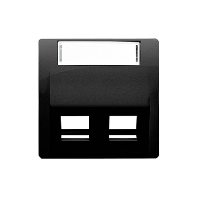 Simon Basic Pokrywa gniazd teleinformatycznych na wkłady RJ typu: Panduit, skośna podwójna z polem opisowym czarny BMGPS2P.02/49