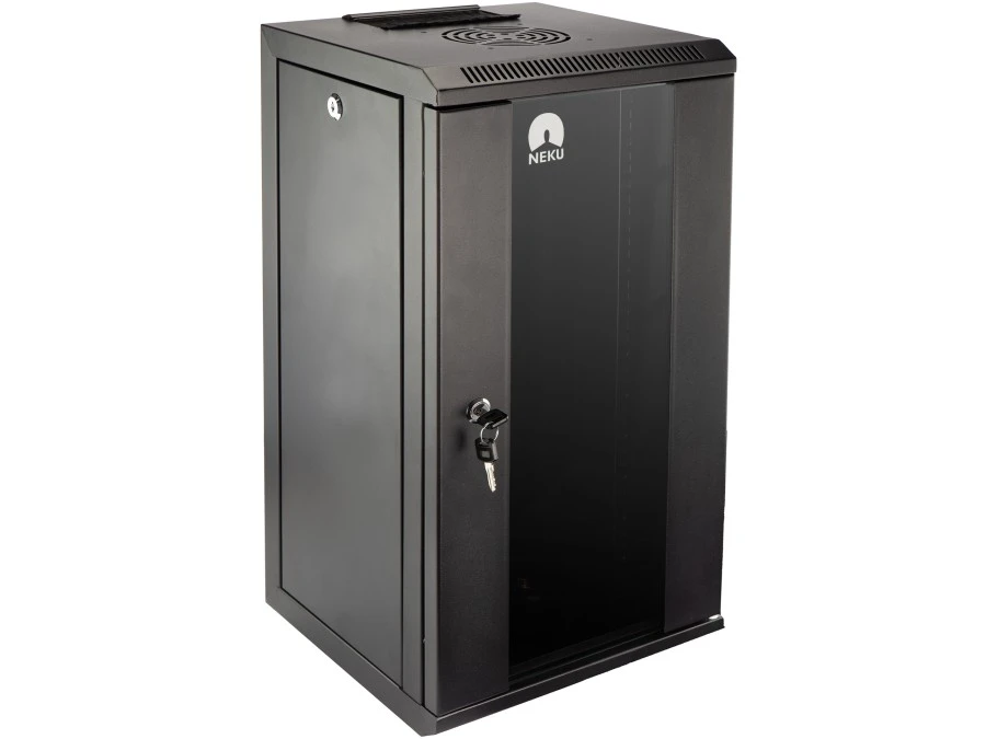 Szafa wisząca RACK 19" 6U 350mm drzwi szklane czarna NEKU TS BOX
