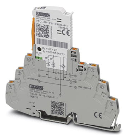 15. Ochronnik przeciwprzepięciowy 30 V DC na szynę DIN Phoenix Contact Urządzenie ochrony przeciwprzepięciowej 10kA 968.02