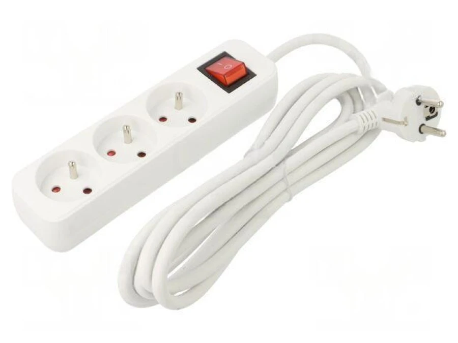 Przedłużacz 3-gniazda E 10A 250V wyłącznik kabel L ...