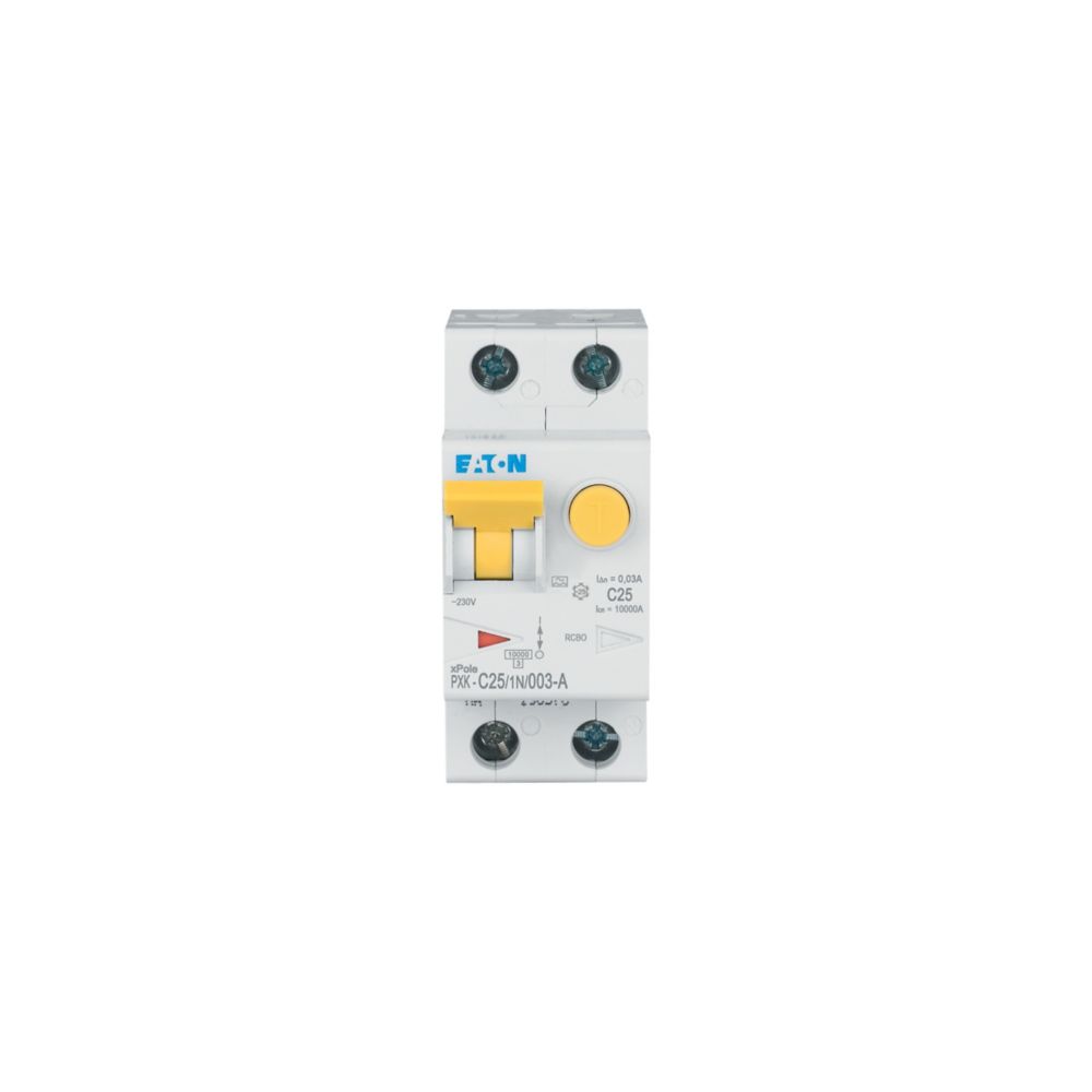 6. Wyłącznik różnicowoprądowy z członem nadprądowym RCBO, Typ A, typ C, 1P+N, 25A, 240V A, 30mA, na szynę DIN, Eaton 961.54