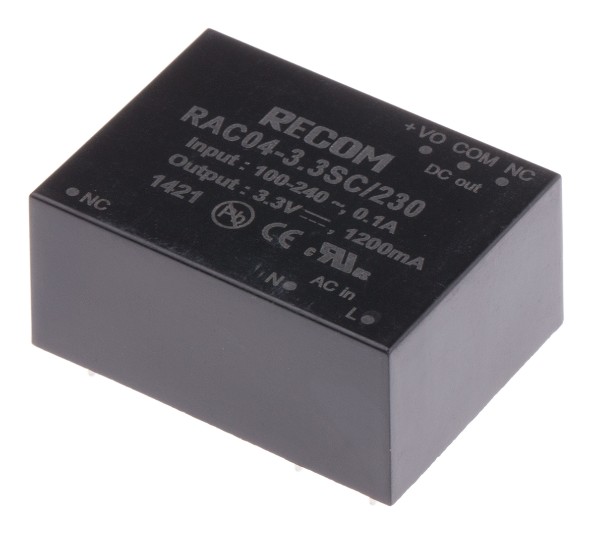 15. Zasilacz impulsowy nap. wyjściowe: 3.3V dc 4W 1.2A 1 wyjście nap. wejściowe: 80 → 264V ac Do montażu na płytce 1225.95