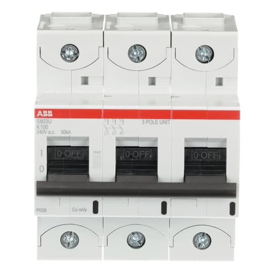 Wyłącznik nadprądowy MCB, Typ K, 3-biegunowy, 100A, 240V, ABB, S800U