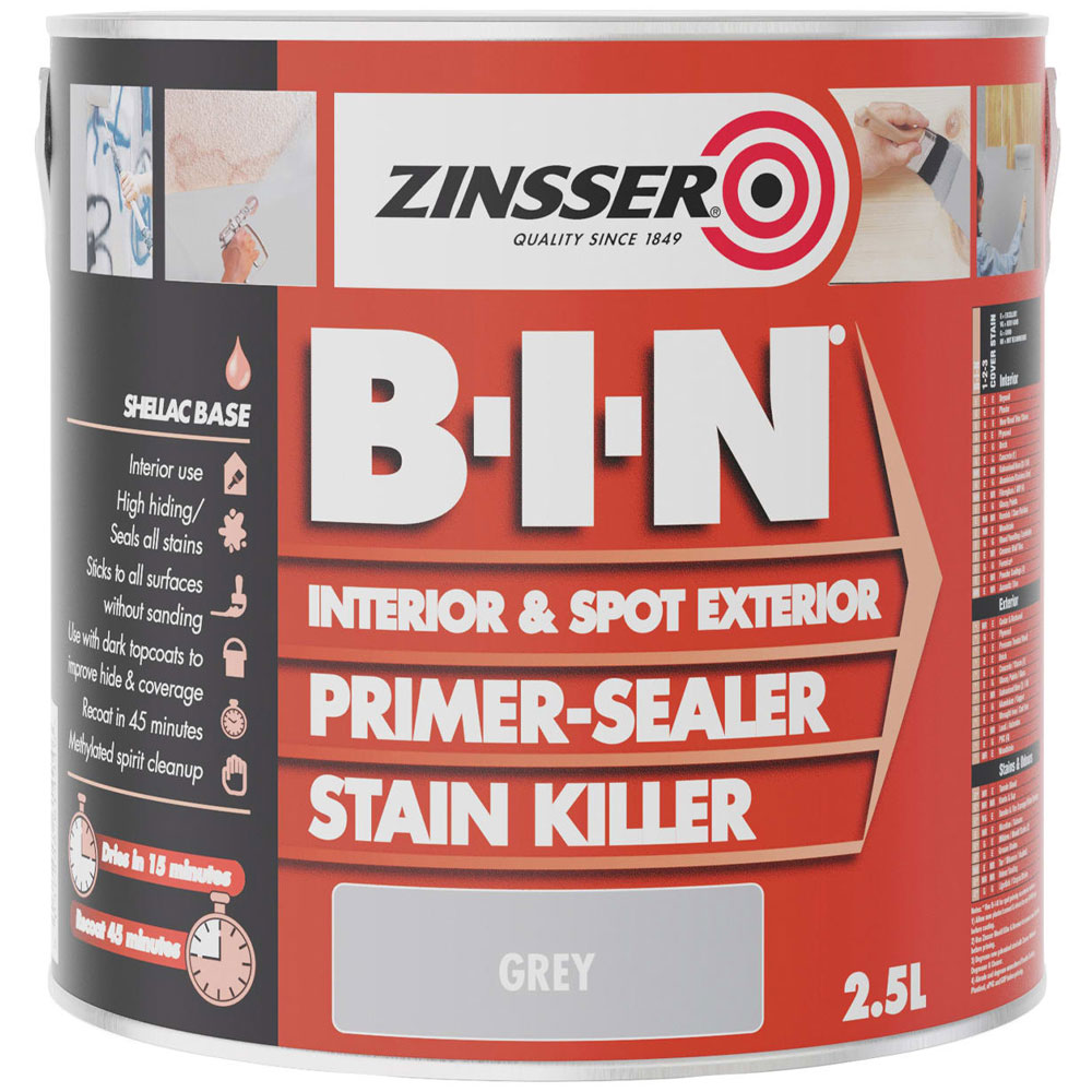Zinsser ZN7020353C1 B.I.N® Primer, Sealer & Stain Killer Paint Grey 2.5 litre