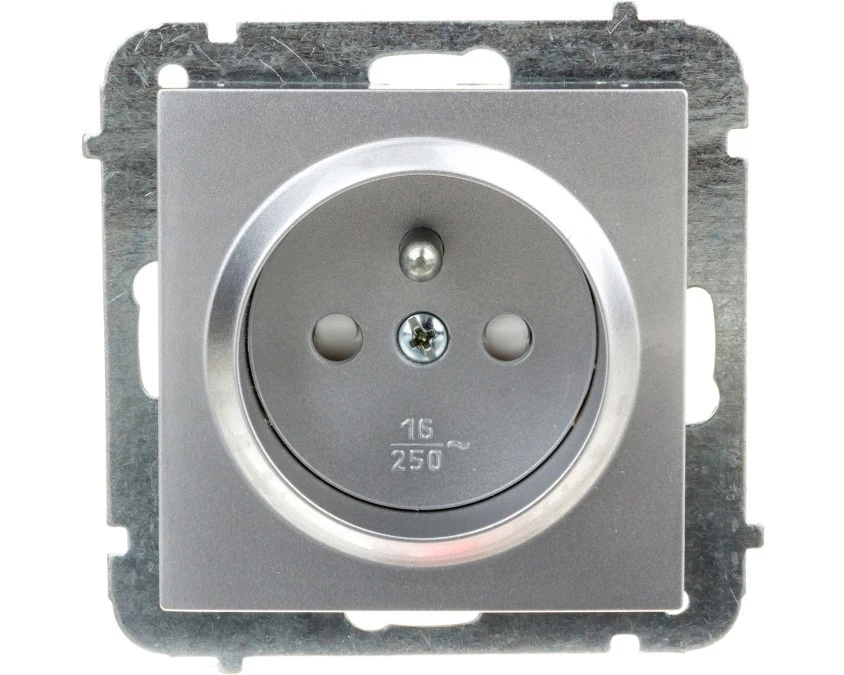 Sentia Gniazdo pojedyncze z/u 16A z przesłonami srebrny połysk 1434-56