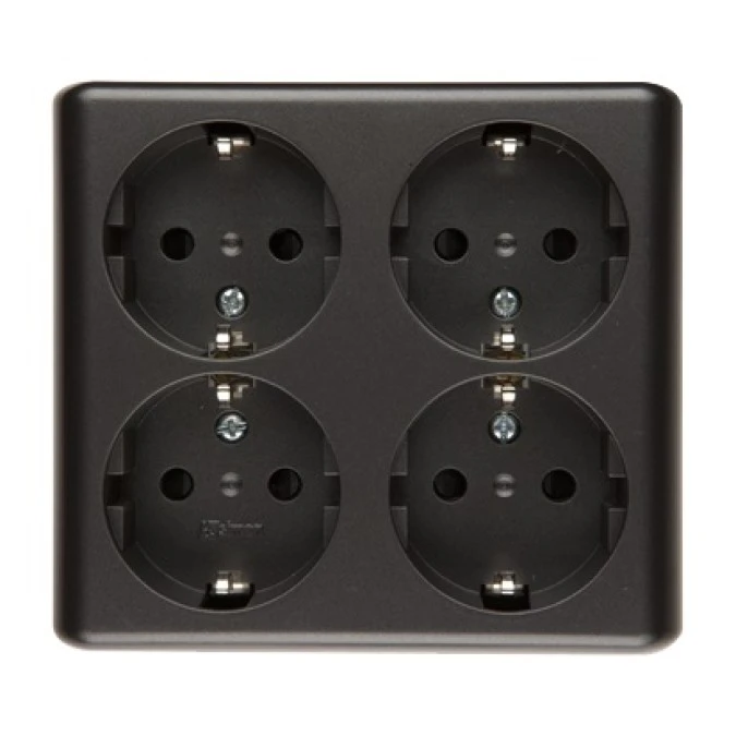 1. Simon 54 Gniazdo poczwórne Schuko natynkowe z przesłonami wersja skandynawska antracyt EGSZ4NZ/48 111.54