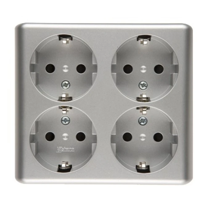 2. Simon 54 Gniazdo poczwórne Schuko natynkowe z przesłonami wersja skandynawska srebrny mat EGSZ4NZ/43 111.54