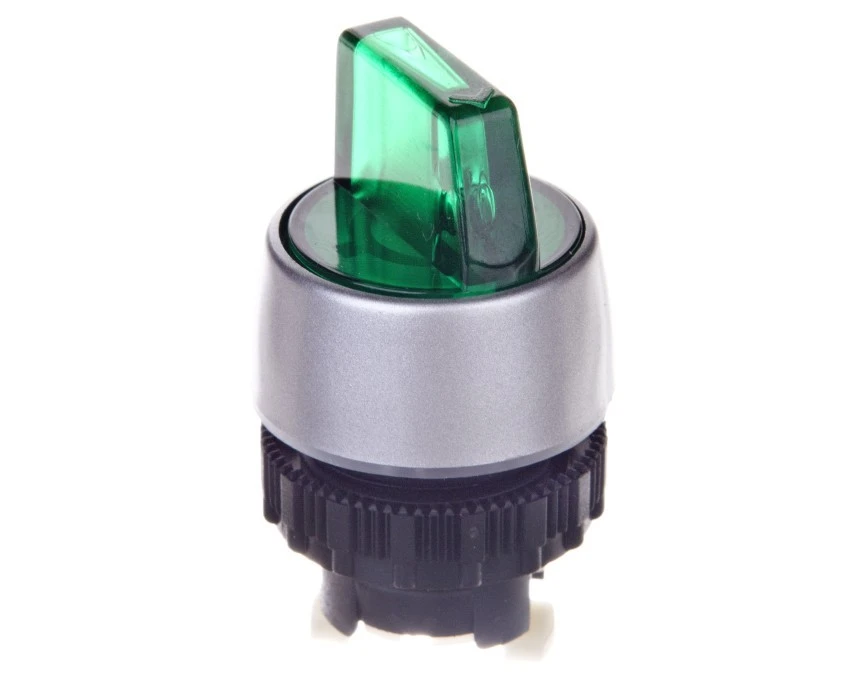 10. Napęd przełącznika obrotowego piórkowego 2-położeniowy zielony pierścień niklowany ST22-PC.Z. 40.27