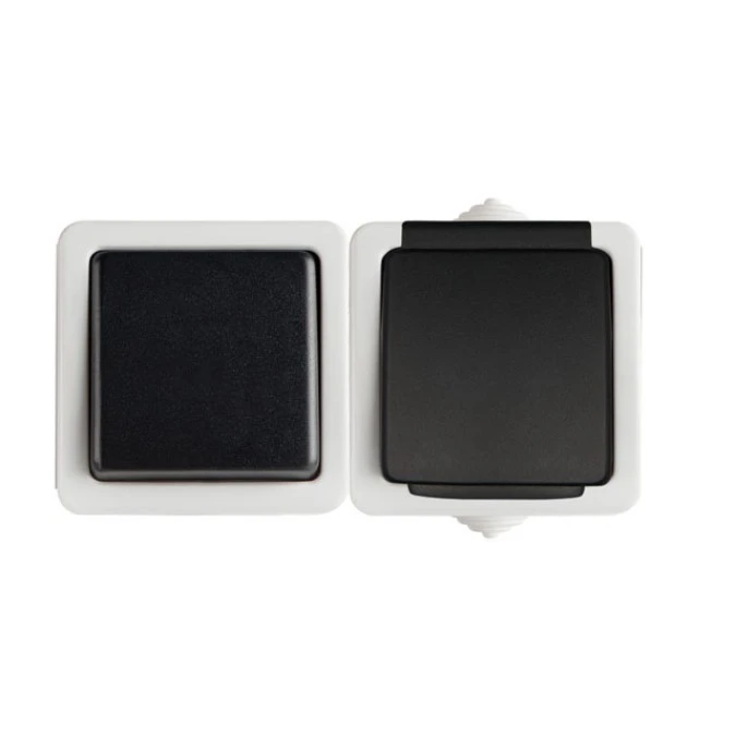 TEKNO Łącznik jednobiegunowy + Gniazdo z przesłoną styków 10AX/16A 250V szary IP54 25358