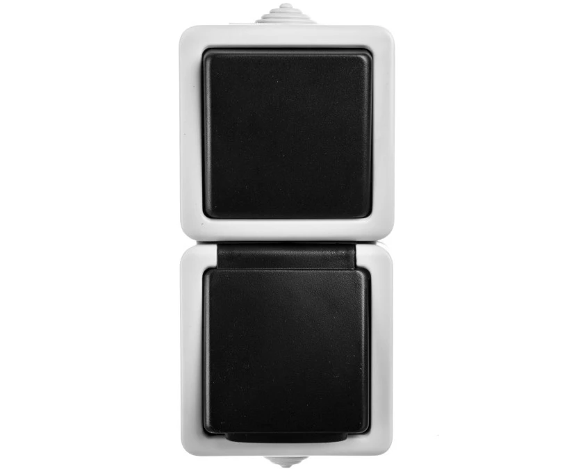 TEKNO Łącznik jednobiegunowy + Gniazdo z przesłoną styków pionowy 10AX/16A 250V szare IP54 25361