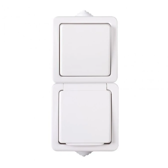 TEKNO Łącznik jednobiegunowy + Gniazdo pionowe z przesłoną styków 10AX/16A 250V biały IP54 27358