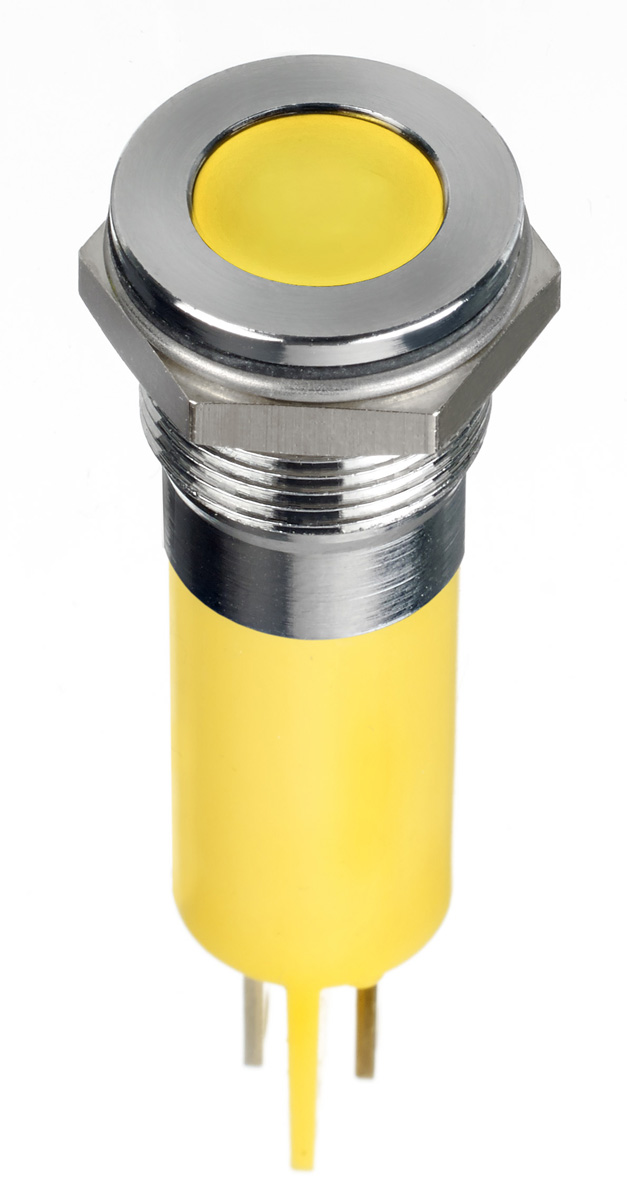 9. Lampka kontrolna do montażu panelowego 24V dc, Żółta 12mm LED Chrom Faston, oczko lutownicze RS PRO 56.78