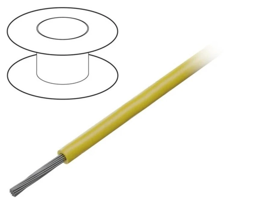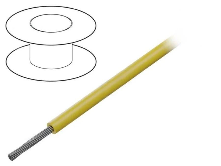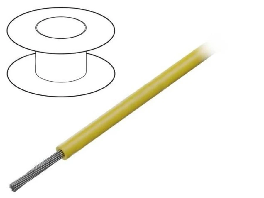 A 28AWG hook-up wire with yellow PTFE insulation ...