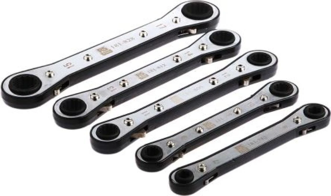 2. Zestaw narzędzi nastawnych Zestaw kluczy zapadkowych RS PRO 7 x 8 → 15 x 17 mm 5 szt. Stal chromowo-wanadowa 347.82