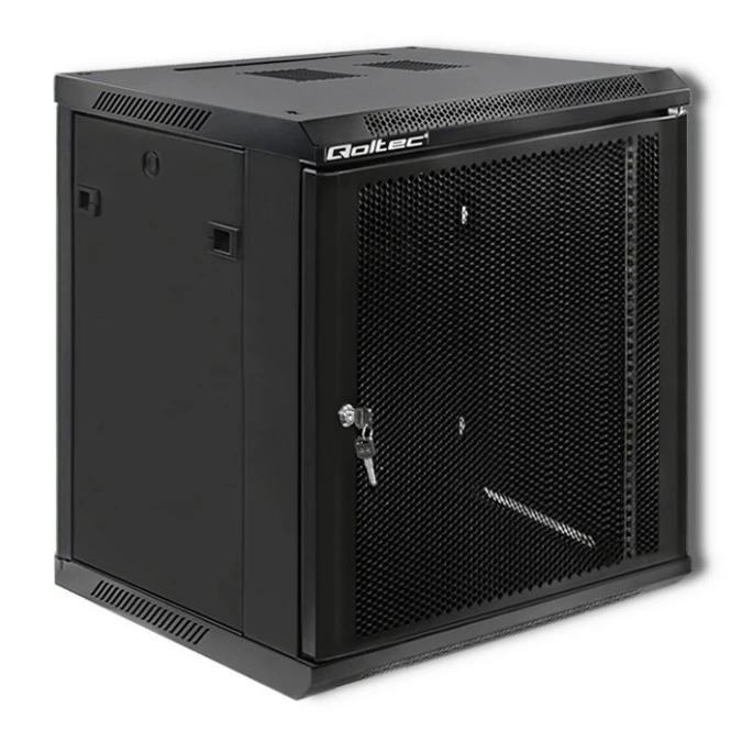 8. Qoltec Szafa RACK 19 12U 600 x 635 x 600 Perforowane drzwi Wisząca Stalowa obudowa Zamek Czarna 548.08
