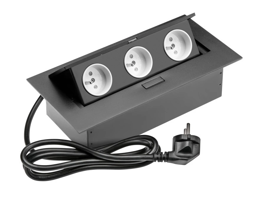 Przedłużacz biurkowy 3x gniazdo z uziemieniem, kabel zasilajacy z wtyczką, czarny