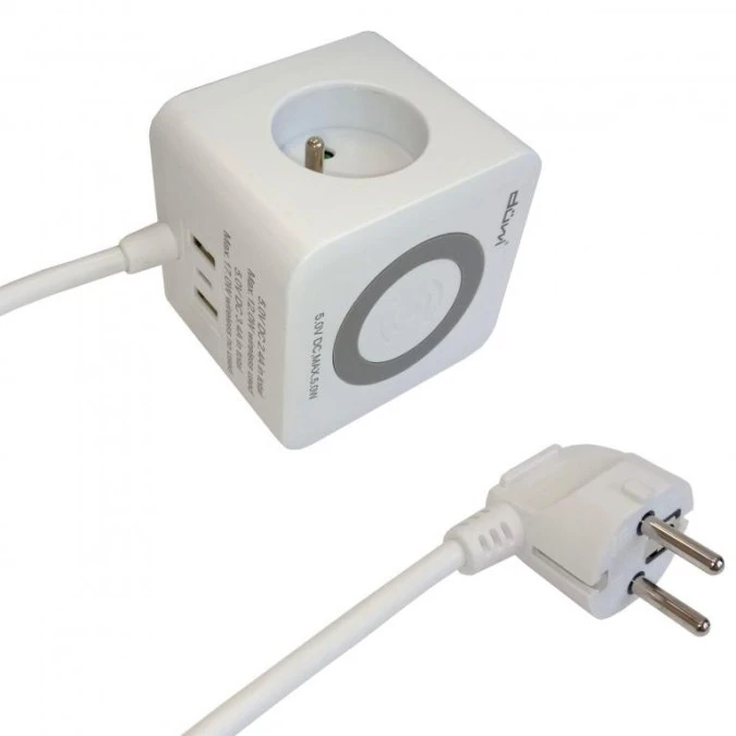 Przedłużacz 3-gniazdowy, +2xUSB-A+1xUSB-C, z ładow. indukcyjnym, 1,4m, biały, 3x1,0mm OWY / 34100