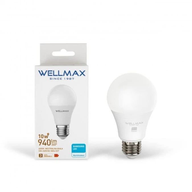 Żarówka WELLMAX LED E27 10W 94lm/W 940lm Barwa ...