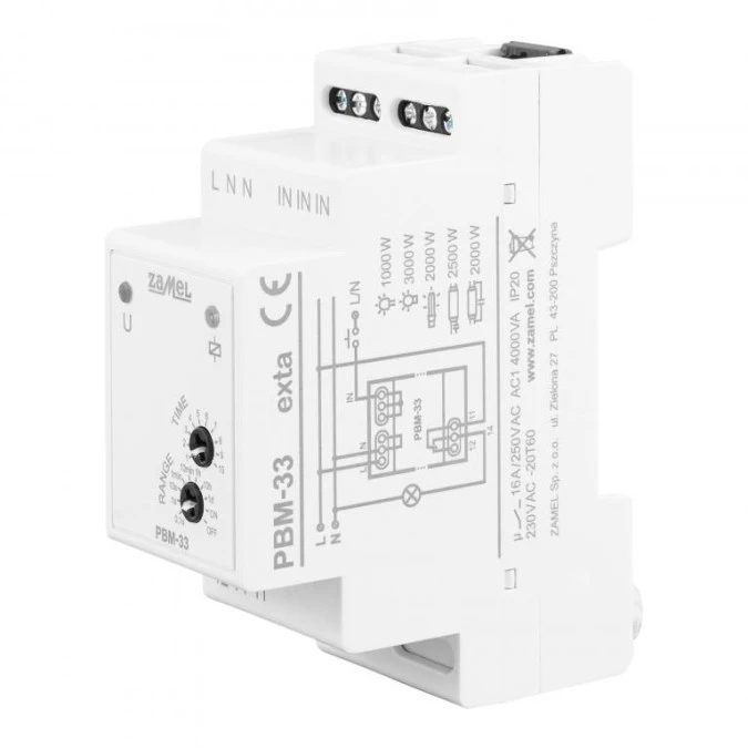 Przekaźnik bistabilny (impulsowy) przełączany w zerze funkcja ograniczenia czasowego 230V AC PBM-33 EXT10000310