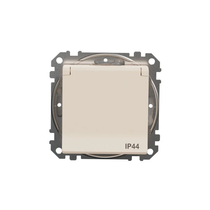 Gniazdo zasilające 2P+PE z przesł. torów pr, zaciski bezgw. IP44, beżowy, Sedna Design i Elements SDD212014
