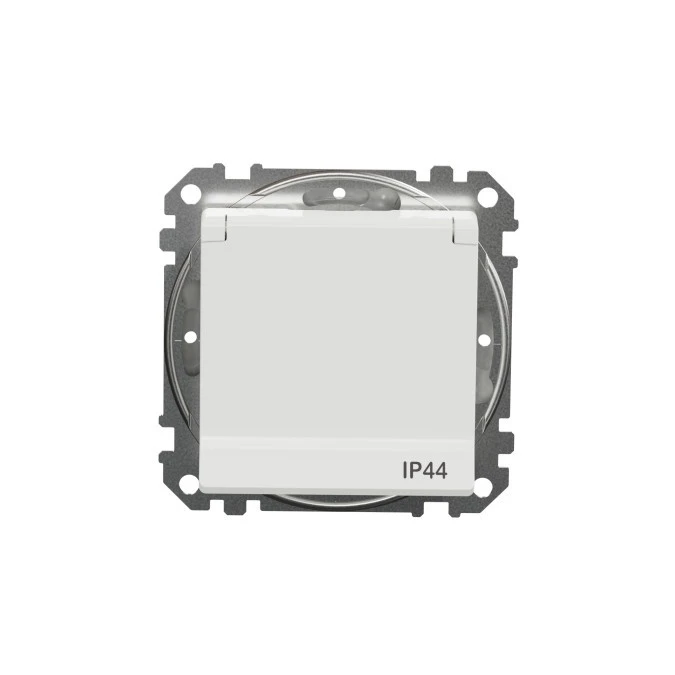 1. Gniazdo zasilające 2P+PE z przesłonami torów prądowych IP44, białe, Sedna Design i Elements SDD211013 26.06