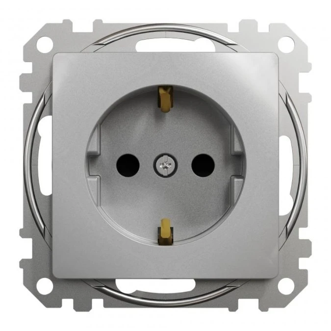 Gniazdo zasilające schuko z przesłonami torów prądowych, srebrne alum., Sedna Design i Elements SDD113021