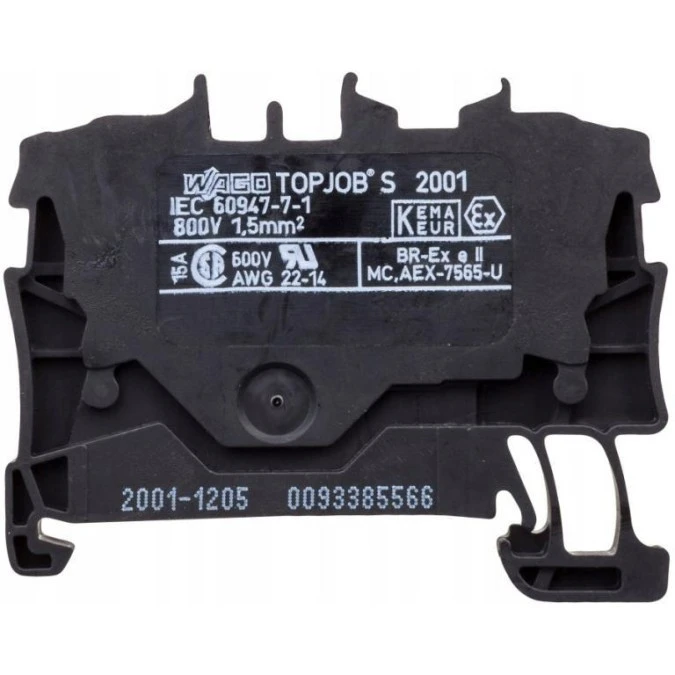 14. WAGO TOPJOBS 2001-1205 Złączka szynowa 2-przewodowa 1,5mm2 na szynę TH35 czarna 4.28