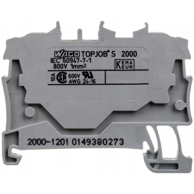 15. WAGO TOPJOBS 2000-1201 Złączka szynowa 2-przewodowa 1,0mm2 na szynę TH35 szara 4.43
