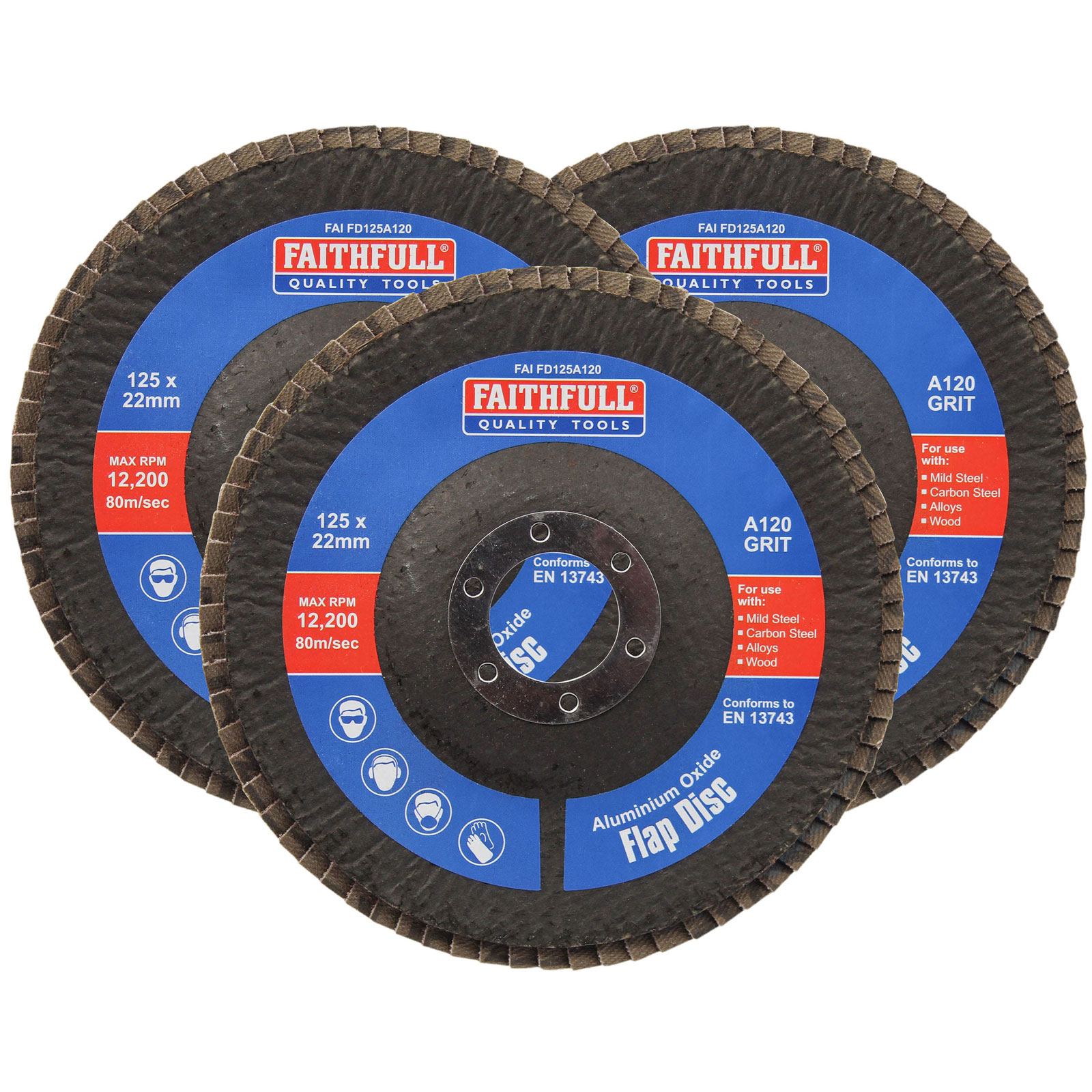 9. Faithfull FAIFD12512A3 Aluminium Oxide Flap Disc 125 x 22mm 120 Grit (3 Pack) 35.69