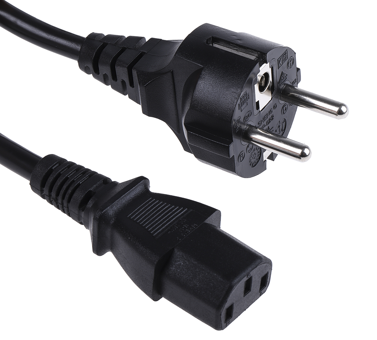 Przewód zasilania złącze A: IEC C13 złącze B: CEE 7/7 1m 10 A 250 V 1mm2 Czarny