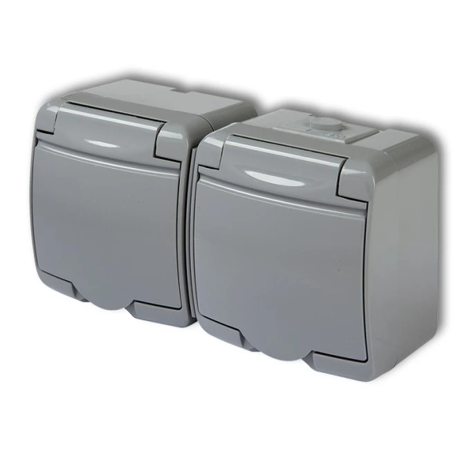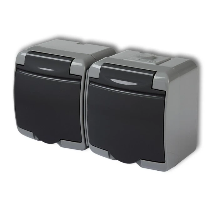 1. JUNIOR Gniazdo podwójne z/u SCHUKO (klapka grafitowa) popielaty / grafitowy 30GHE-2sp 42.03